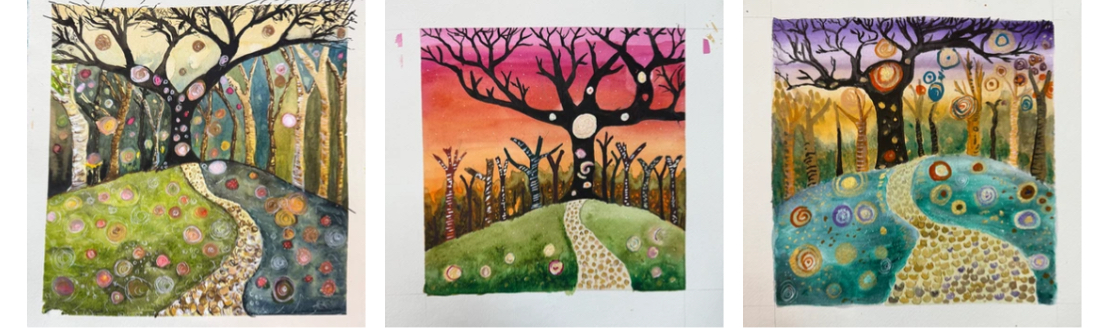 | £60Step into the world of Gustav Klimt in this relaxed and creative watercolour workshop. Inspired by Klimt’s rich patterns, flowing forms and iconic use of gold, we’ll learn technique of layering, detailing and expressive design to create your own Klimt style artwork. Using watercolour, ink and acrylic, you’ll explore how to combine fluidity with structure bringing both freedom and elegance to your painting. We’ll start by practising the sunset background with a beautiful wash before we start on your painting.
